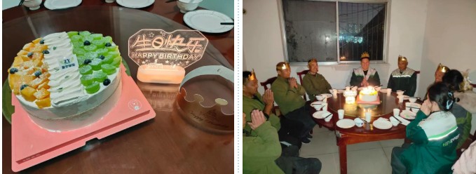 壽星們圍坐,燭光逐一亮起時,有人閉目凝神,有人望向身側的同事,輕聲許下心愿。從許愿時的真誠,到吹蠟燭時的歡呼,再到飯桌上的暢聊,這場生日會傳遞的不僅是溫暖,更是振宇物流“以人為本”的核心價值觀。它讓員工感受到企業(yè)不只是工作的平臺,更是并肩前行的“家人”,成長不只是個人的奮斗,更有團隊的托舉。